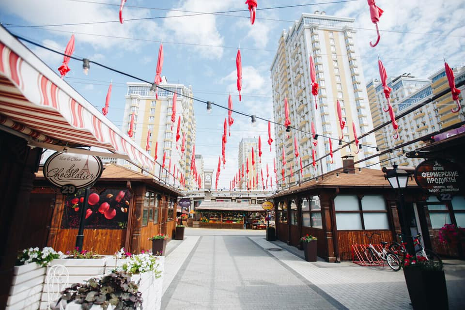 Это место — точная копия одной из пражских улиц. Узкие балконы, брусчатка, много коричневого и жёлтого цветов, горшки с живыми растениями, высокие железные фонари — здесь есть чем полюбоваться.